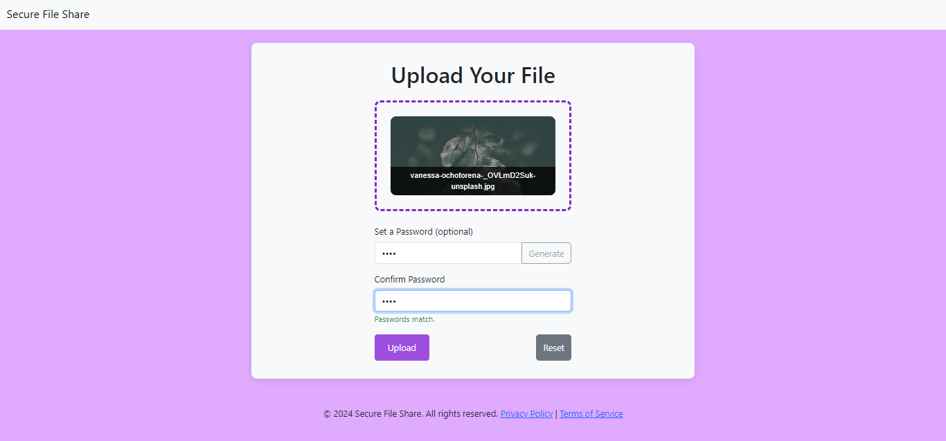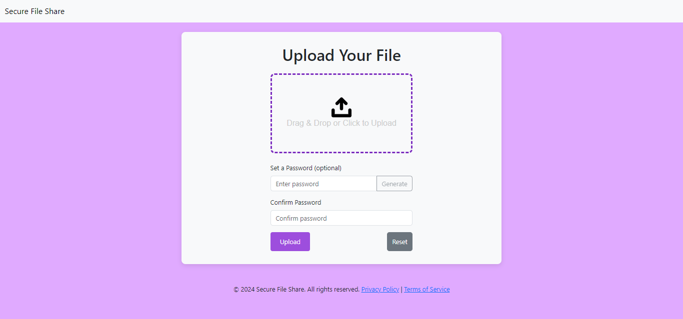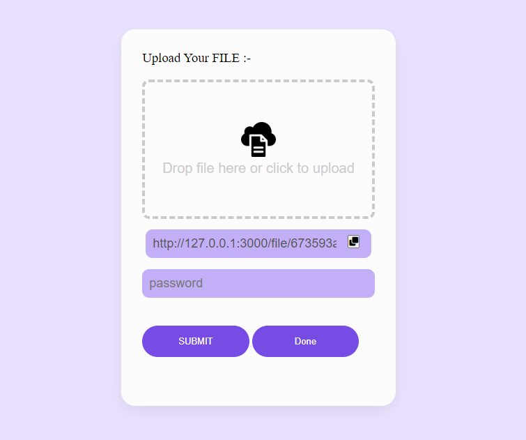 A secure file sharing system built with Node.js, Express, MongoDB, Multer for file uploads, and bcrypt for password hashing. This system allows users to securely upload files, share them using a link, and optionally set a password for additional security.