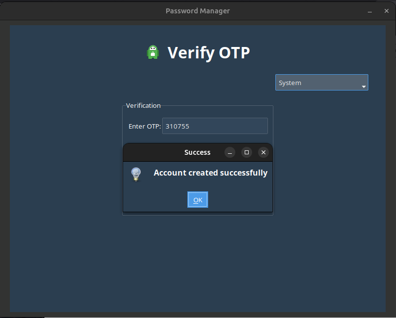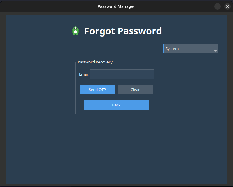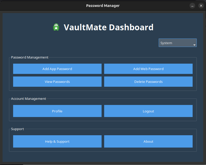 A secure, cross-platform, and modern password manager with a user-friendly GUI built using Python, CustomTkinter, and MongoDB. VaultMate ensures your credentials are encrypted and easily accessible, while prioritizing strong security practices like email verification, 2FA, and hashed authentication.
